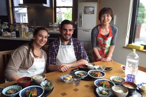 和食好きの米国からのご家族4名(ご夫婦・奥様の姉・お孫さん)がホームビジットで我が家に来訪。和室の設えや日本の置物にも興味を持たれ、ご主人とお孫さんは調理に積極的に参加。鰹削り器やすり鉢でのごま摺り、IHでの出汁巻き練習など初体験を楽しみ、最後は全て完食され大満足でお帰りになりました。帰る際には1人ずつ丁寧にハグをしてお別れしました。おもてなしの心が伝わりとても嬉しく思いました。
